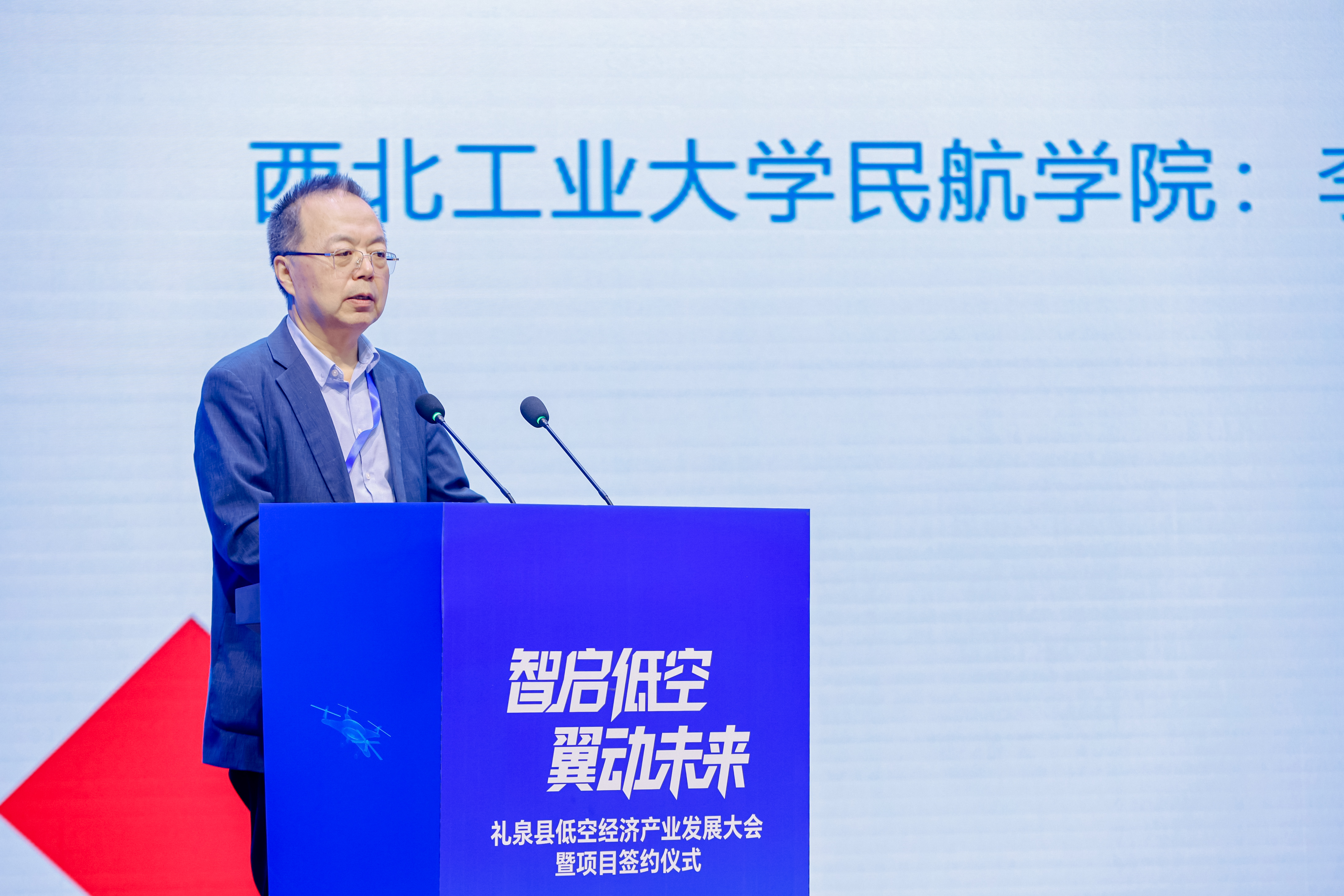 西北工业大学民航学院院长李玉龙从学科与产业融合角度,解读低空经济与无人机发展趋势。他表示,低空经济有低空制造、低空飞行、低空保障、综合服务四大领域,同时具有辐射面广、产业链条长、成长性强、带动性强等显著特点,对县域经济高质量发展具有重要意义。学院将依托在低空经济学科建设上的成果,与礼泉礼泉深度合作,为产业发展培养更多专业人才,提供更多技术支撑。
