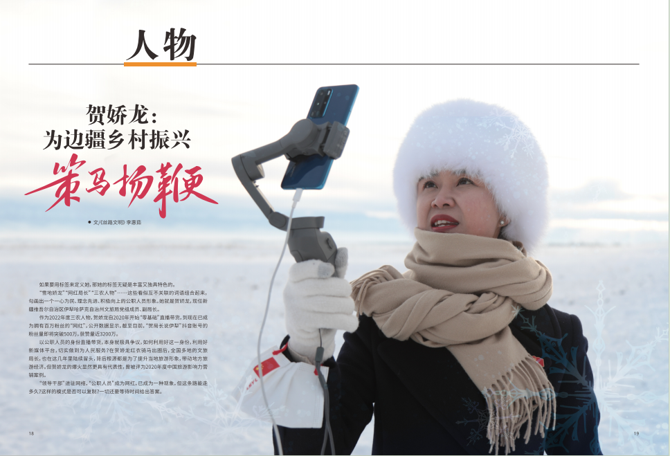 在采访中,贺娇龙也向海外朋友发出邀请,希望更多人关注“一带一路”倡议及新疆作为丝绸之路重要节点的独特魅力,“走进新疆、了解新疆、爱上新疆”。她同时祝愿《丝路文明》杂志越办越好,成为各国文化交流的重要媒介。